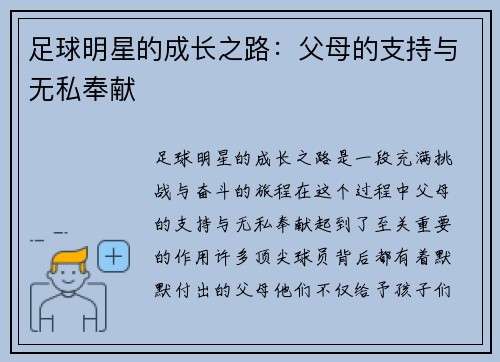 在当今社会,足球明星的光环不仅仅体现在他们的比赛成绩上,他们的个人生活、婚姻状况以及与伴侣的互动也成为了媒体和公众关注的焦点。近期,一对足球明星夫妻携手走红毯的事件引发了广泛讨论。他们在红毯上的甜蜜表现,不仅展现了彼此深厚的感情,更是引起了媒体和粉丝们热烈的关注与热议。从时尚造型到情感交流,这一切都体现出足球明星夫妻在公众视野中的独特魅力。本文将从四个方面深入探讨这一事件,包括明星夫妻如何通过红毯...