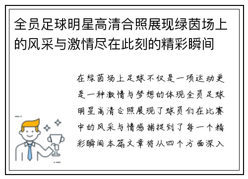 本文将围绕足球明星伊布的精彩瞬间壁纸进行详细探讨与分享。作为一位杰出的足球运动员,伊布以其卓越的球技和个性化的风格吸引了全球数百万球迷。本文将从四个方面深入分析伊布的精彩瞬间壁纸,包括他的职业生涯亮点、壁纸设计理念、下载方式及分享途径,以及对球迷的重要意义。通过这些方面的阐述,读者可以更好地欣赏和获取这些充满激情与活力的壁纸,并感受到伊布在绿茵场上留下的不朽印记。 1、职业生涯亮点 首先,伊布·...
